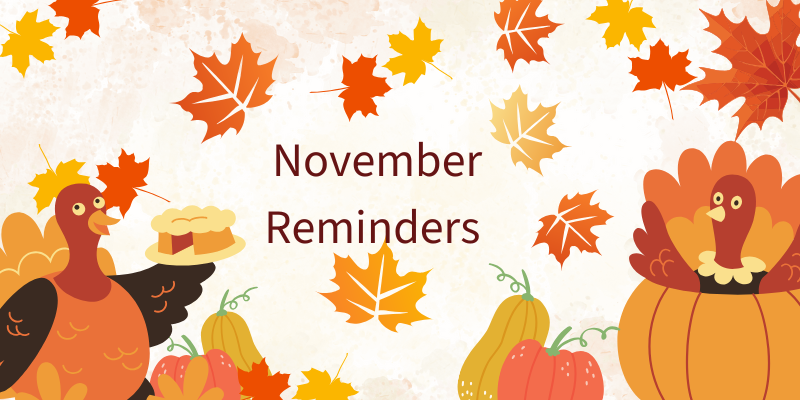 - Nov 24-29Â – Studio closed for Thanksgiving Break (Saturday classes will meet on Nov 22)